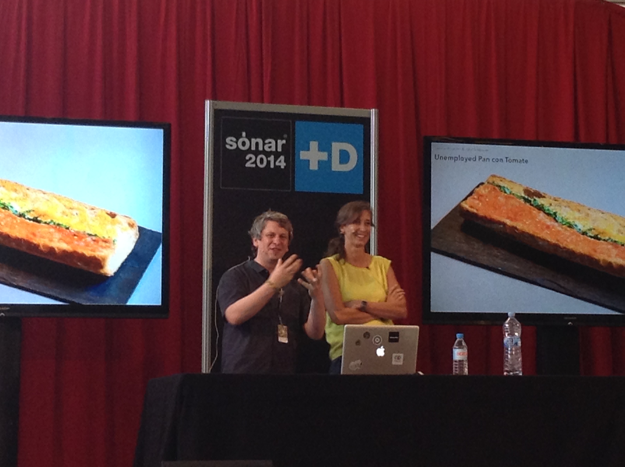 Data Cuisine, Helsinki-born research project by Moritz Stefaner and Susanne Jaschko, was one of the most surprising projects presented during these three days. Using food as a medium, they represent data and tell stories from the local context where food is cooked. On stage, they presented the results of a 4-day workshop done at Barcelona as part of the CCCB’s Big Bang Data exhibition. Expressing data on a physical medium beyond the screen, they managed to get our attention on important issues as the unemployement rate or the state of scientific research in our country.